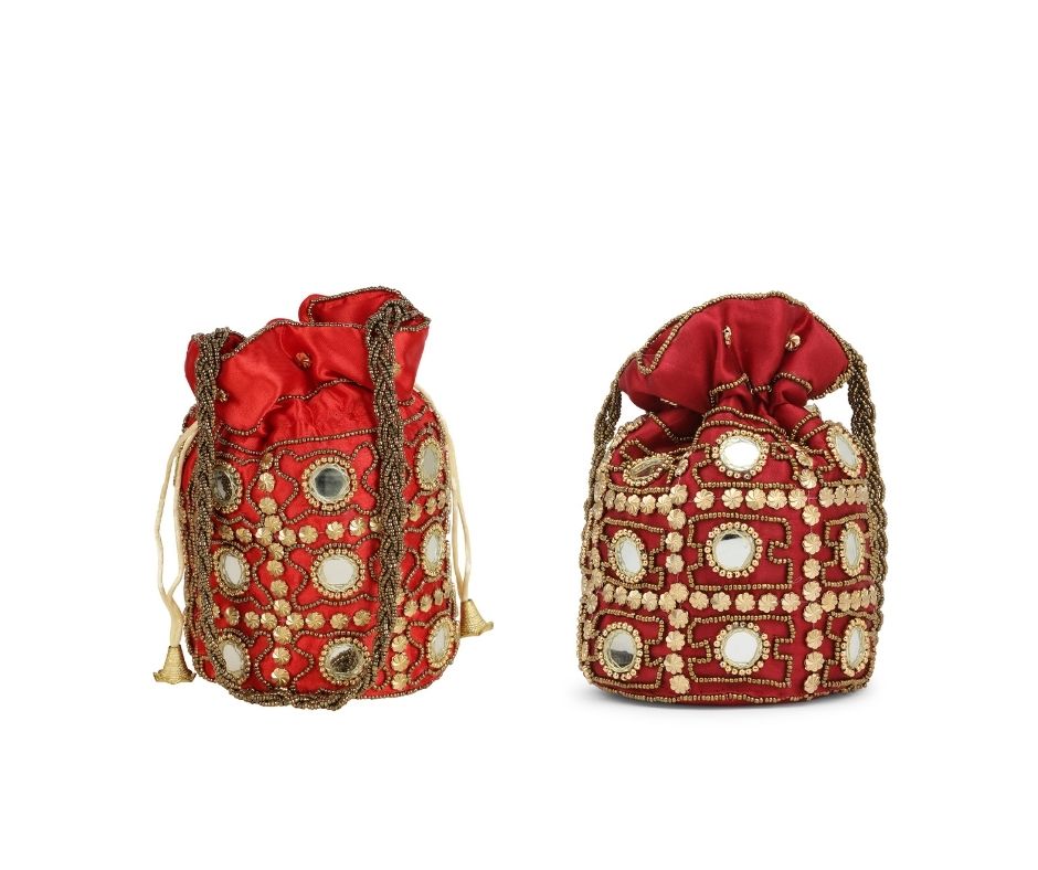 Combo - Designer Embroidered Potli Bag - Red & Golden