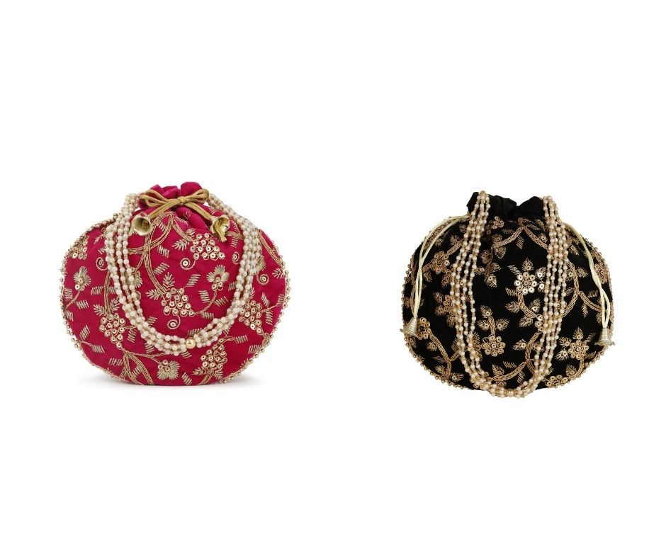 Be the first to review “Designer Embroidered Potli Bag Combo- Pink & Black” Cancel reply