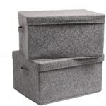 Storage Bin Box with Lid Cover & Handle Room Organizer for Clothes, Living Room Bedroom Nursery Closet Office & Other Supplies Large (Pack of 1, Grey, Rectangular, Polyester, Linen, Fabric)