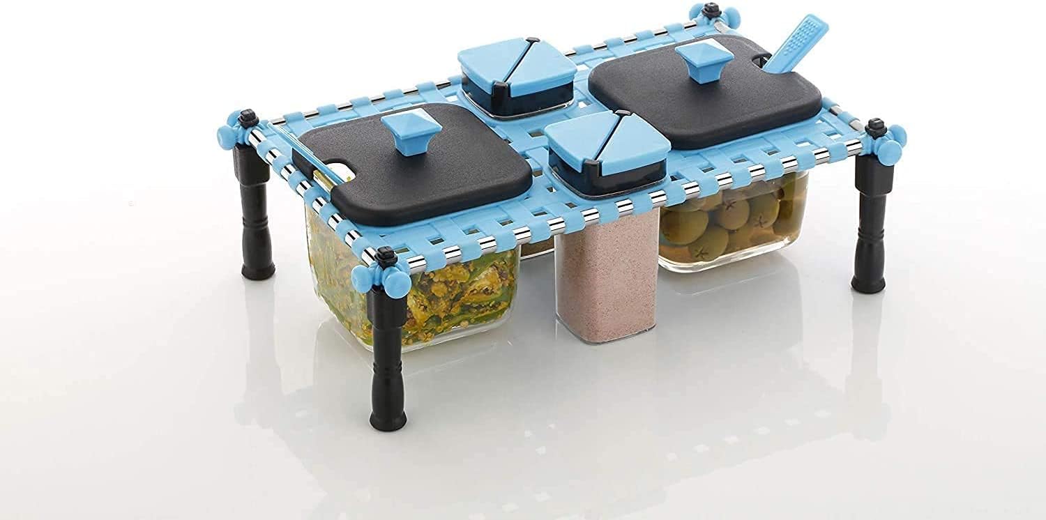 Traditional Indian Cot Type Spice and Pickle Container Set CharPai Aachar Set Kitchen Utensil Salt and Pepper Set for Dining Table (Khatli – Charpai)